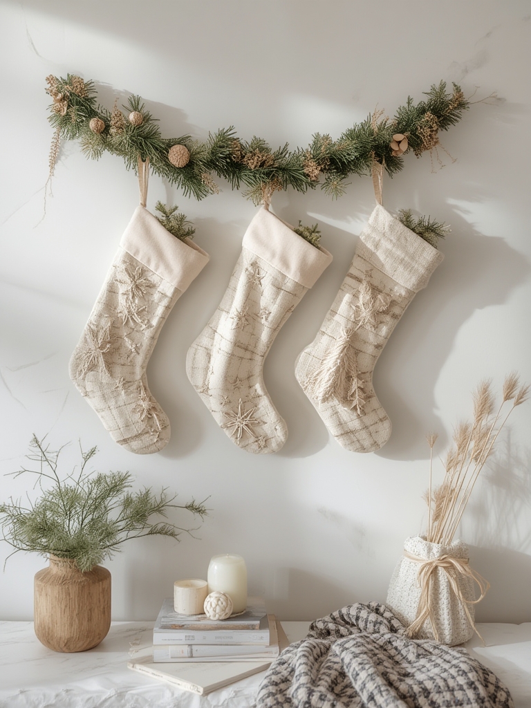 - Vertical display: For limited wall space, create a vertical “stocking ladder” using an old wooden ladder